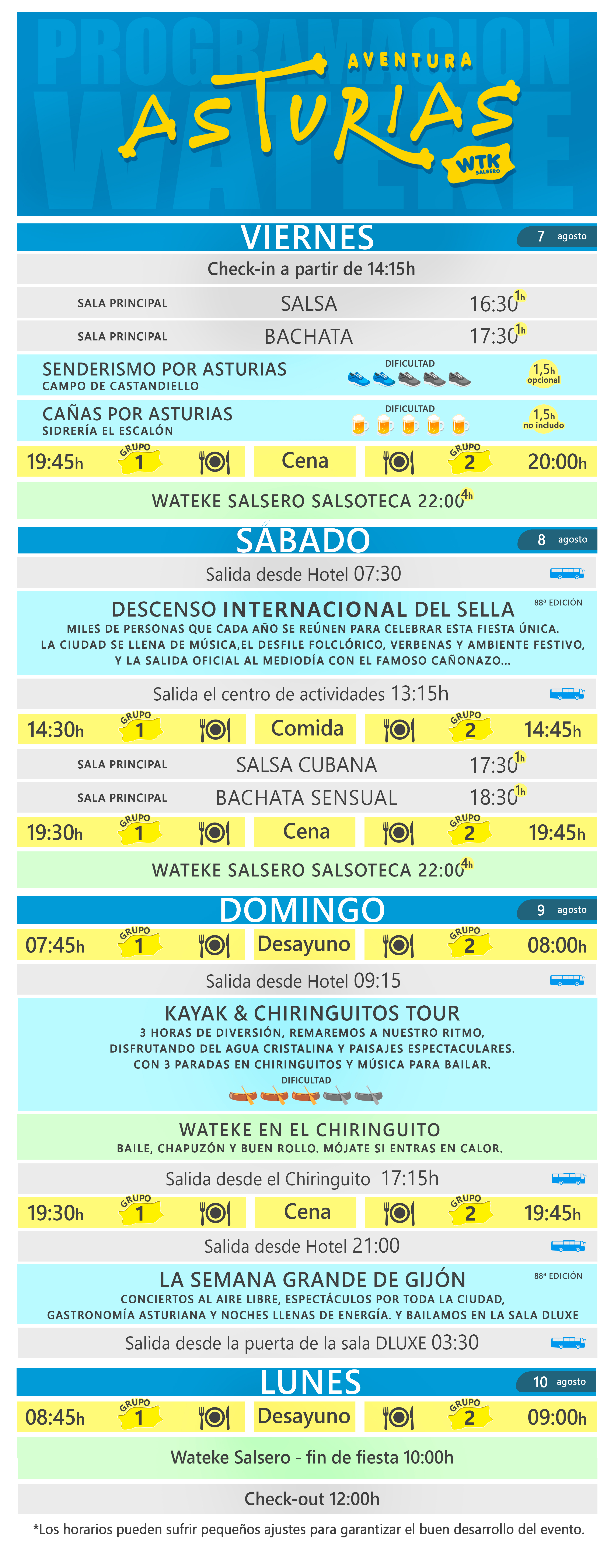 Cada hora está pensada. Lo que surja entre medias, lo pones tú.