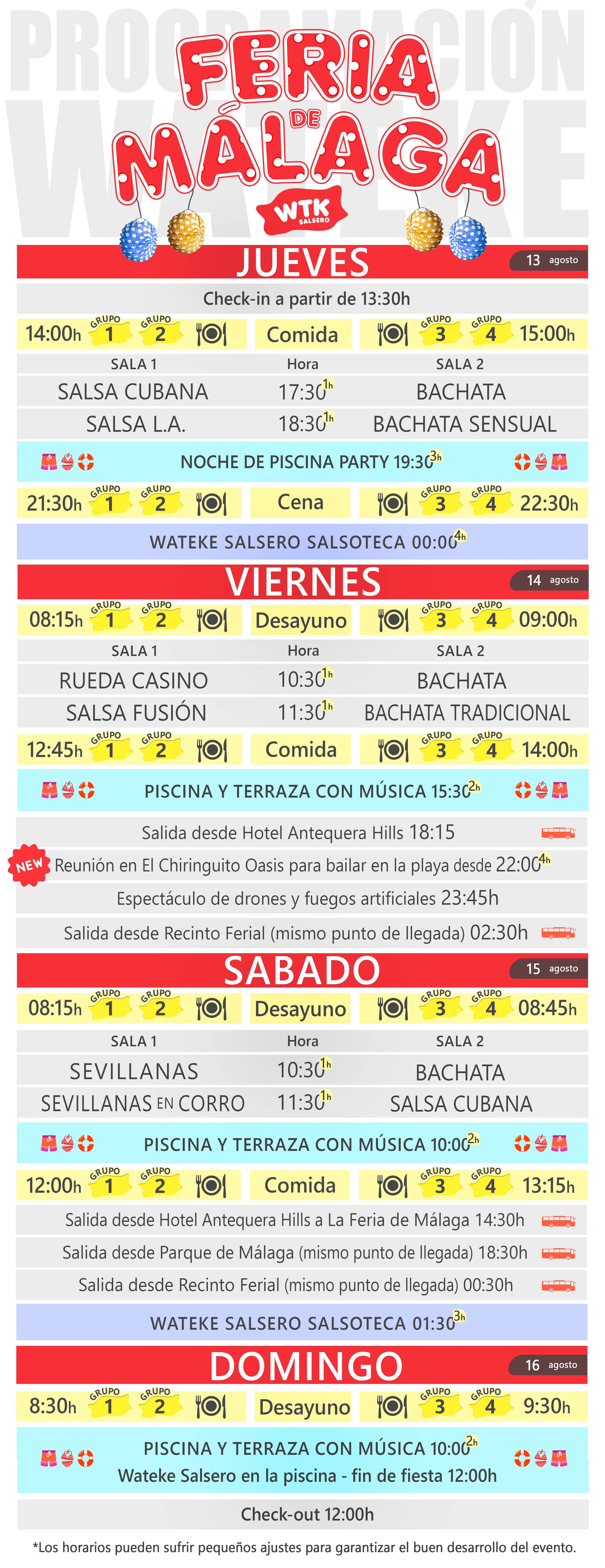 Sala 1: Salsa Cubana · Salsa L.A. | Sala 2: Bachata · Bachata Sensual